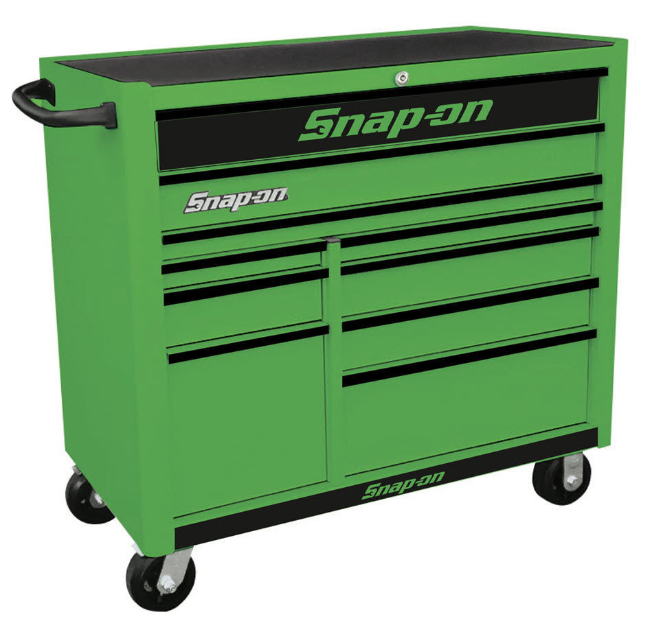 KRA2210KZUEB-B-WO - Wide 10Drw Roll Cabinet; Extreme Green with Black Aluminium Trims and Black Fronts