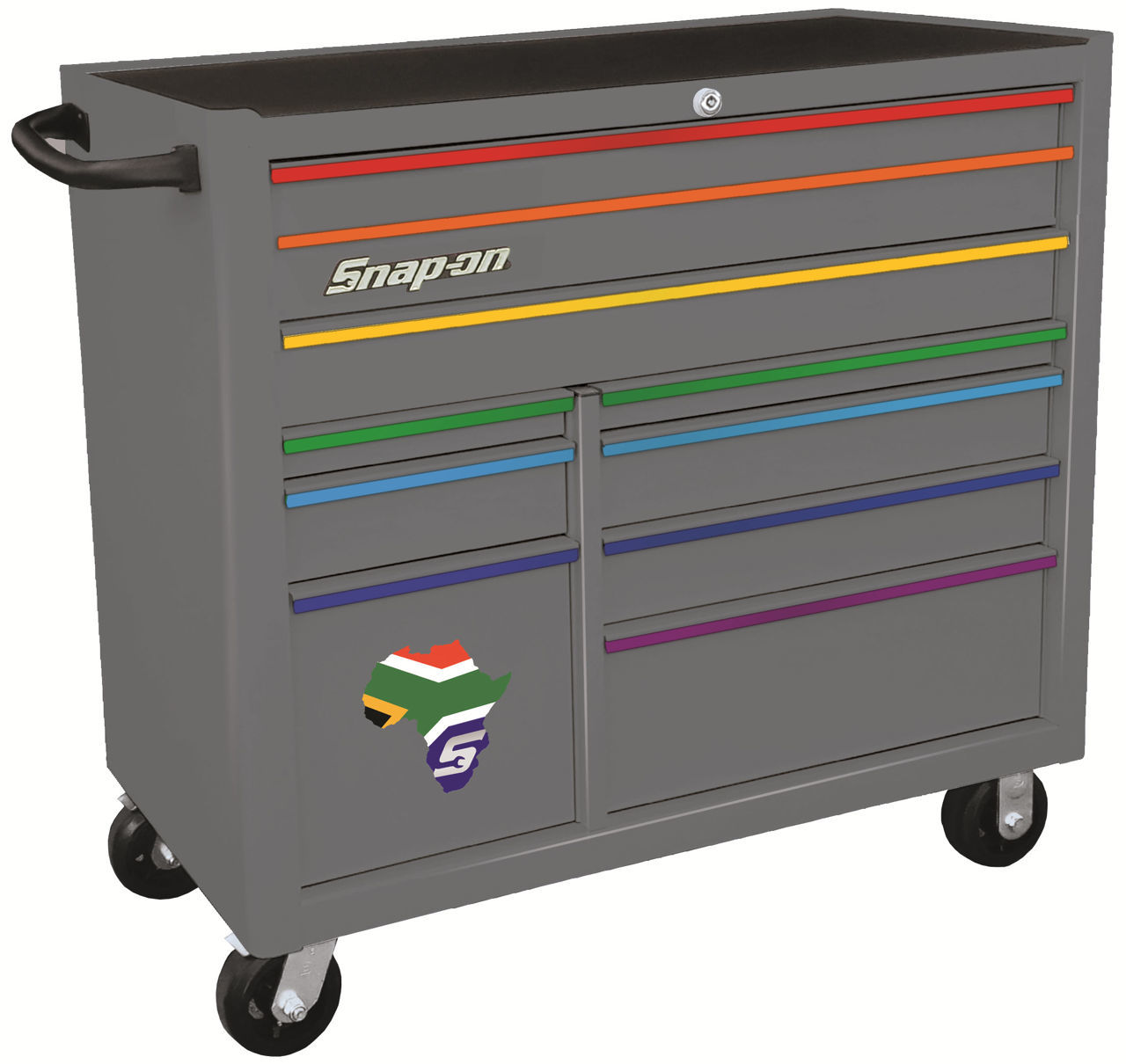 KRA2210KZUSX-NF-WO - Wide 10Drw Roll Cabinet; Storm Grey with "Rainbow" Aluminium Trims