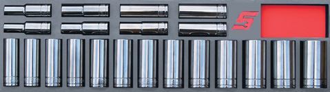 MOD.249SH45S - 1/2" Deep Socket Set; 21Pc - Metric