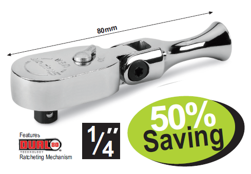 FRKF80A - 3/8" Drive Dual 80® Technology Stubby Handle Flex-Head Quick-Release Ratchet 120mm