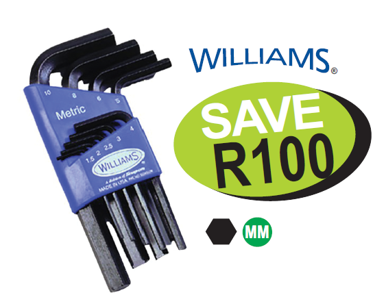 : 1.5, 2, 2.5, 3, 4, 5, 6, 8 mm & 10 mm wrenches in a plastic index
