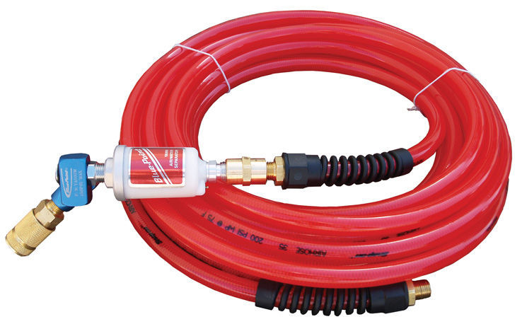 YA999SWV23AH35-WO - 35' Reinforced Polyurethane Air Hose (Red) with In-Line Air/Water Seperator; Swivelling Adapter & Quick Coupler